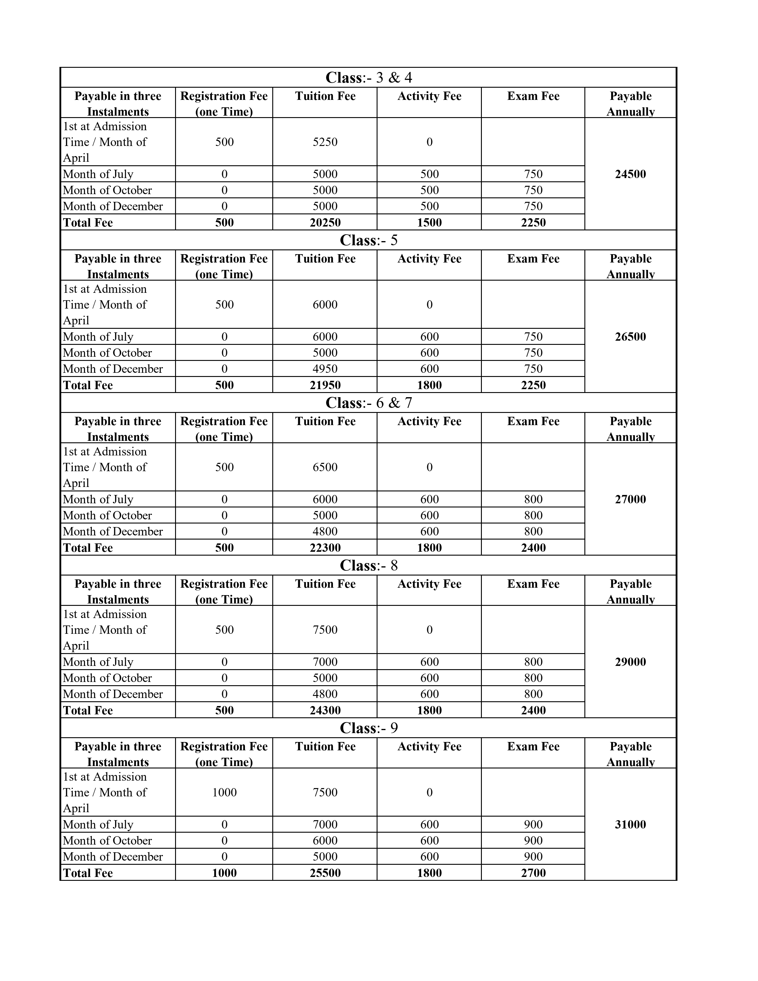 Fees Structure