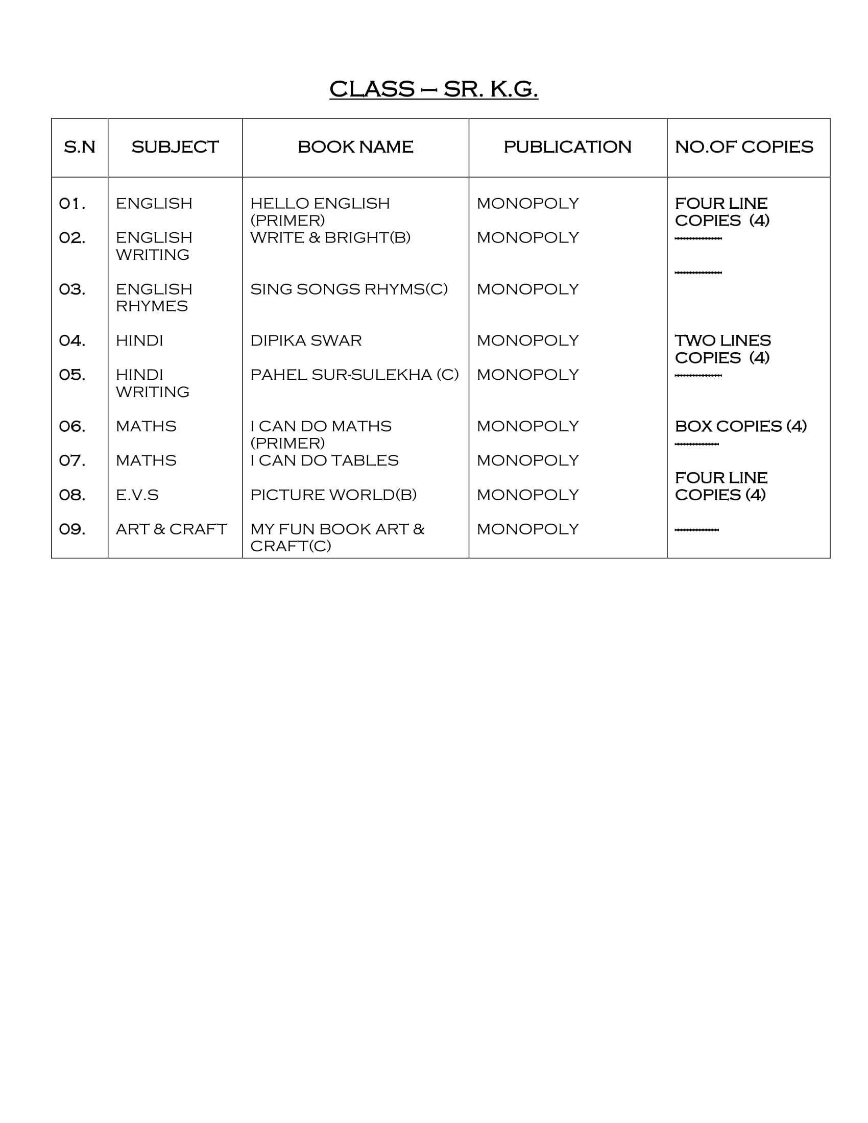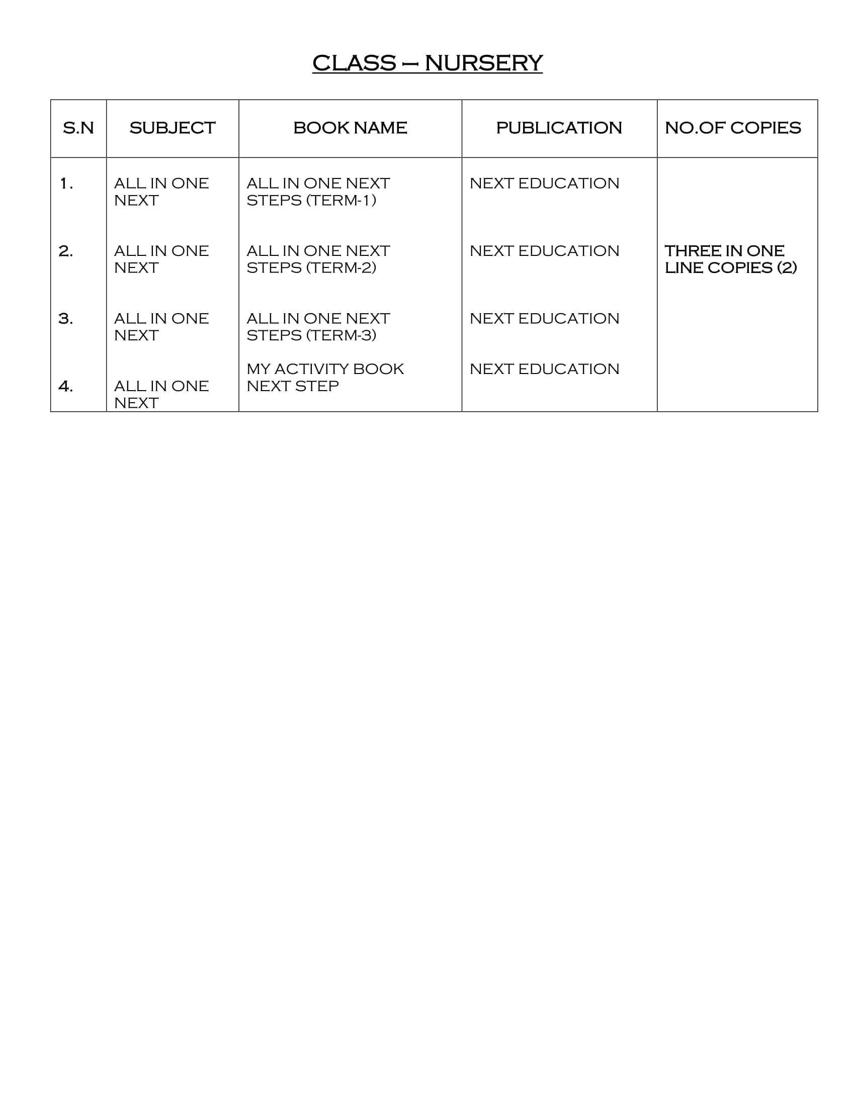 Nursery to KGIInd